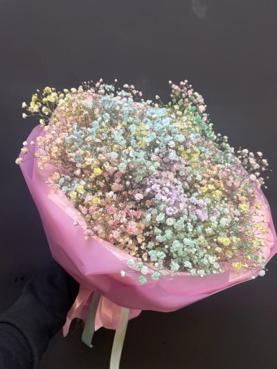 Это не просто букет, а самое нежное признание! Букет из разноцветной гипсофилы — как акварельный рисунок, оживший в твоих руках. Он словно соткан из в