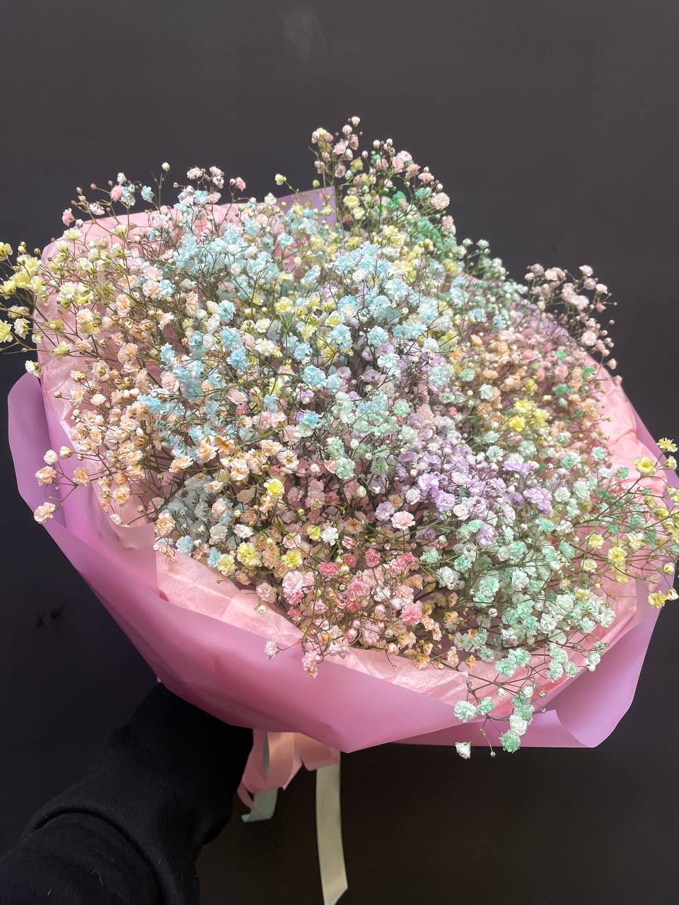 Это не просто букет, а самое нежное признание! Букет из разноцветной гипсофилы — как акварельный рисунок, оживший в твоих руках. Он словно соткан из воздуха, легких облачков и улыбок.